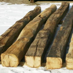 Fünf historische Eichenbalken. Hundert Verwendungsmöglichkeiten.