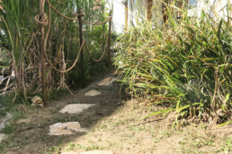 "Damit meine Gäste sicher auf meine Terrasse kommen, habe ich Omar mit dem Legen eines Wegs beauftragt. Da viel Ziergras in meinem Garten wächst und ich den maritimen Stil gerne mag, hatte Omar die Idee, dass wir für das Geländer ein dickes Tau benutzen können. Ich liebe den Blick auf „meine kleine Düne“ und bekomme viele Komplimente für diese kreative Idee."